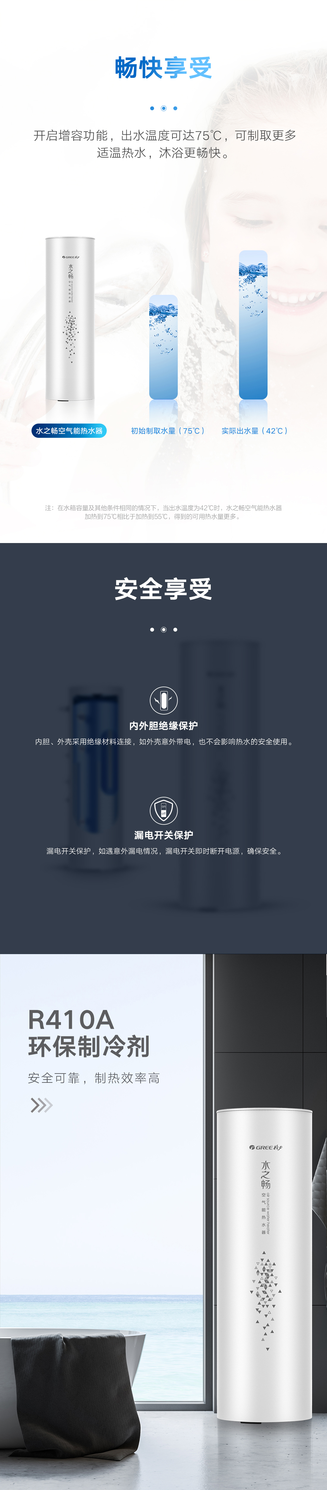 新型環保冷媒,綠色節能更高效,內置增容、向日葵、i-know等個性化功能;給您的沐浴帶來多樣化體驗