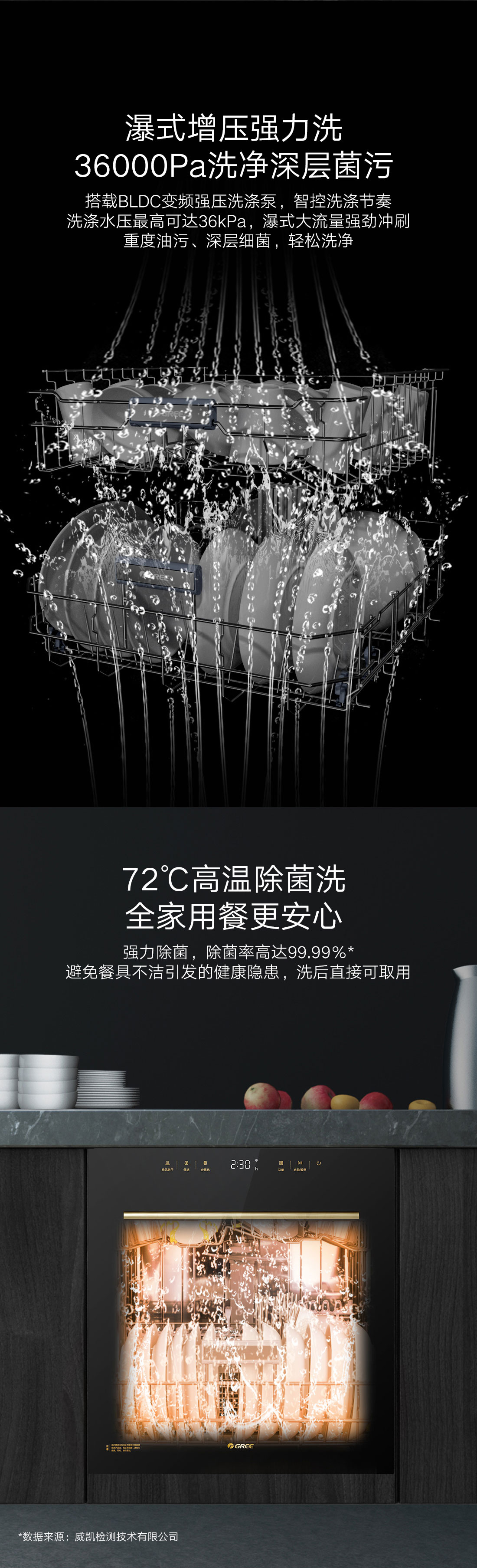 搭載瀑式增壓強洗科技,36KPa洗凈深層菌污,除菌率達99.99%;洗烘除存一體,存放7天也干爽